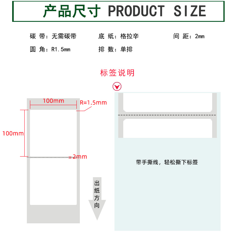 【標簽間距】2mm、圓角R=1MM、卷芯寬度:40mm