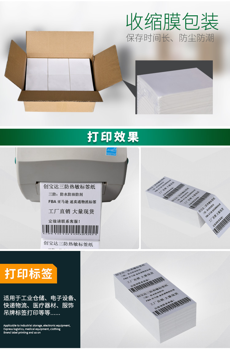 適合不同氣候地區使用,適用于亞馬遜FBA、郵政國際物流標簽、郵政包裹、EBAY、速賣通、遞四方、EUB標簽紙、電商標簽,五金塑膠等