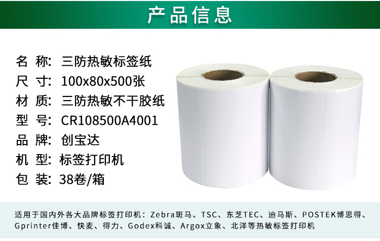 【規格】卷裝100*80*500張單排(足數:500張)一箱裝38卷
