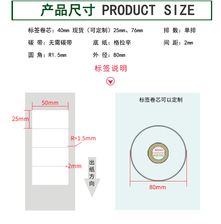 【標簽間距】2mm、圓角R=1MM、卷芯寬度:40mm