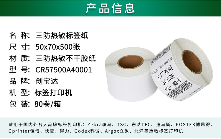 【規(guī)格】卷裝50mm*70mm*500張/卷單排(足數(shù):500張)一箱裝80卷