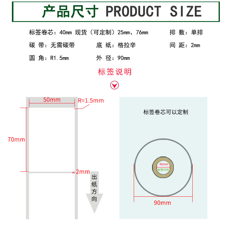 【標(biāo)簽間距】2mm、圓角R=1MM、卷芯寬度:40mm