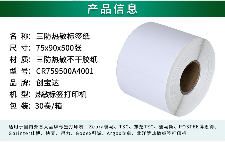 【規格】卷裝75mm*90mm*500張單排(足數:500張)一箱裝30卷