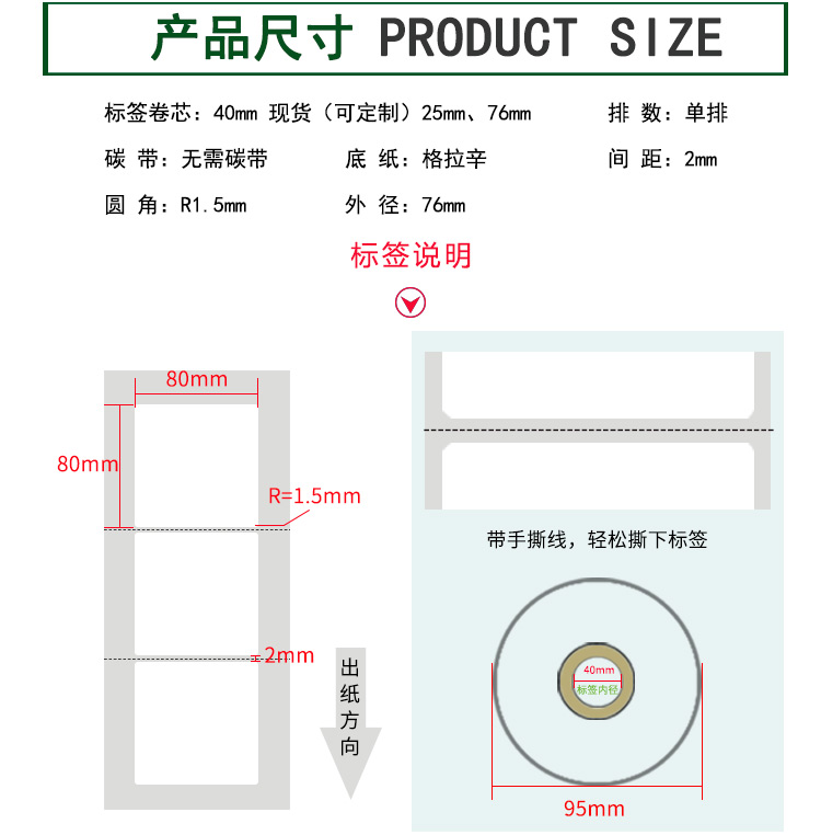 【標簽間距】2mm、圓角R=1MM、卷芯寬度:40mm