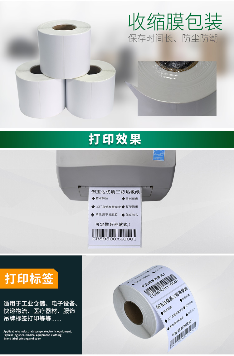 適合不同氣候地區(qū)使用,適用于亞馬遜FBA、郵政國際物流標(biāo)簽、郵政包裹、EBAY、速賣通、遞四方、EUB標(biāo)簽紙、電商標(biāo)簽,五金塑膠等
