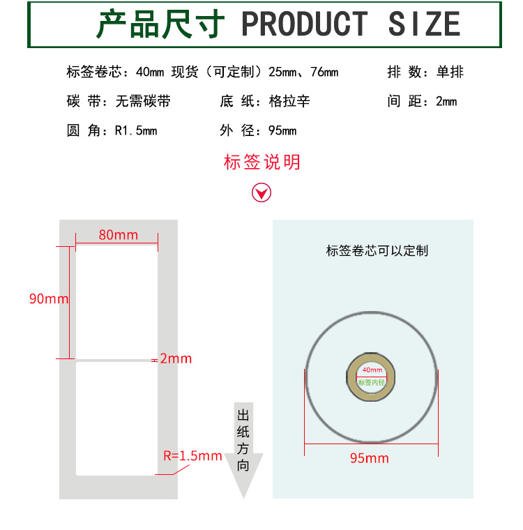 【標(biāo)簽間距】2mm、圓角R=1MM、卷芯寬度:40mm