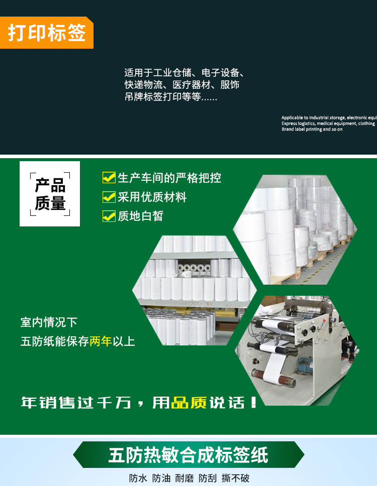 【材質】五防合成熱敏不干膠標簽(撕不爛)
