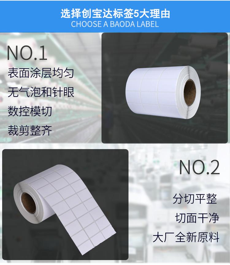 適合不同氣候地區使用,適用電子電器、五金塑膠、服裝、醫藥、日化、食品、商超、倉儲物流、資產管理、條碼標識、外箱貼紙等長期保存的產品標簽及外箱標簽同時也可以用于長時間保存(配合碳帶)的亞馬遜、郵政國際、物流標簽、郵政包裹、EBAY、速賣通、遞四方、出口EUB標簽、出口電商等標簽