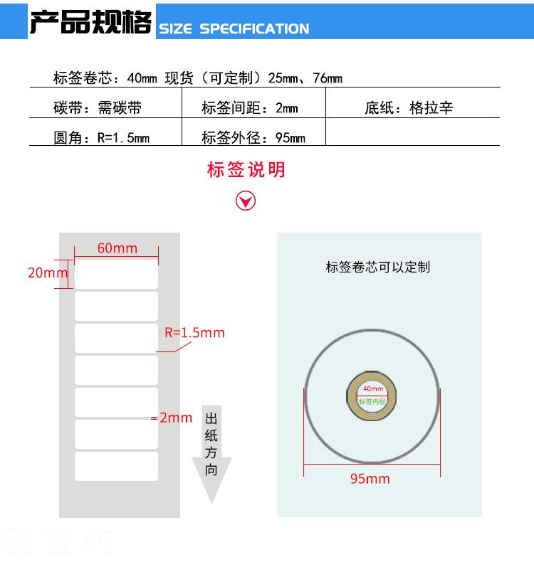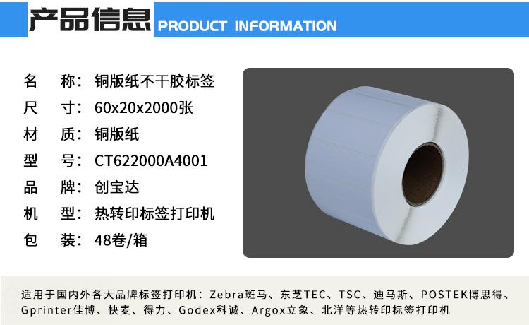 【規(guī)格】60mmx20mmx2000張/卷(足數(shù)),單排,一箱裝48卷