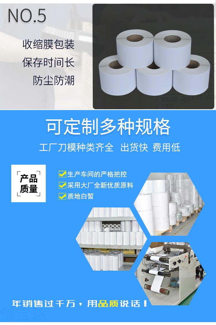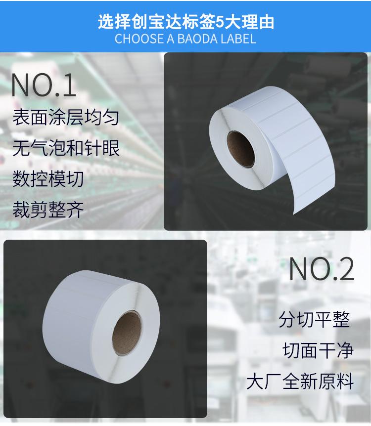 適合不同氣候地區(qū)使用,適用電子電器、五金塑膠、服裝、醫(yī)藥、日化、食品、商超、倉儲(chǔ)物流、資產(chǎn)管理、條碼標(biāo)識(shí)、外箱貼紙等長期保存的產(chǎn)品標(biāo)簽及外箱標(biāo)簽同時(shí)也可以用于長時(shí)間保存(配合碳帶)的亞馬遜、郵政國際、物流標(biāo)簽、郵政包裹、EBAY、速賣通、遞四方、出口EUB標(biāo)簽、出口電商等標(biāo)簽
