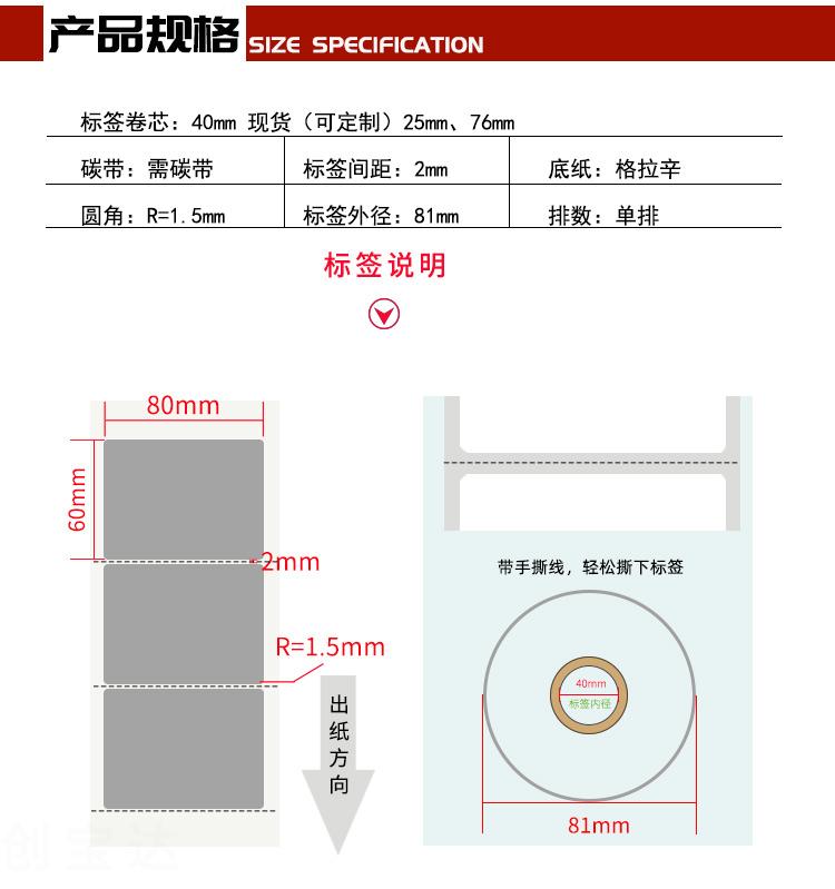 【標簽間距】2mm、圓角R=1.5MM、卷芯內徑:40mm